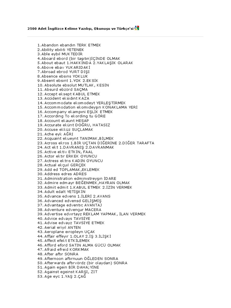 Masa Ingilizce Yazılışı